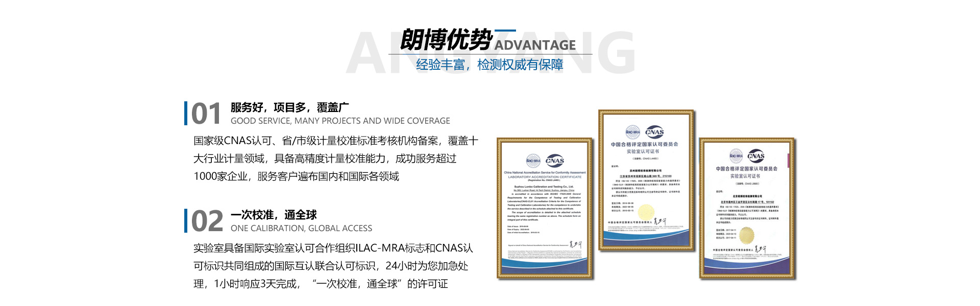 萬博檢測集團(河南萬博檢測服務集團公司,以下簡稱集團),下轄蘇州朗博校準檢測有限公司、東莞朗博校準檢測有限公司、北京朗博校準檢測有限公司、河南朗博校準檢測有限公司、寧波朗博計量檢測有限公司、湖北朗博檢測服務有限公司、武漢經緯朗博校準檢測技術有限公司、南通朗博計量檢測有限公司、南京朗博計量檢測有限公司、揚州重科檢測校準有限公司、蘇州智華鼎知識產權有限公司、徐州聚鼎知識產權代理有限公司、安徽朗博校準檢測有限公司、濰坊朗博檢驗檢測有限公司等十四家公司,在上海、江西南昌、越南北寧等地設有辦事機構。集團是通過中國合格評定(CNAS)及科技工業實驗室認可(DILAC)認可與授權,從事校準、檢測、科技服務的第三方機構,可開展一千余個項目的校準、近二百個項目的檢測技術服務。集團對外本著“科學公正、安全誠信、持續改進”的服務宗旨,“以客戶為中心、以人為本”的經營理念, 對內著力于建立以 “積極、責任、創新”為思想... [查看更多]